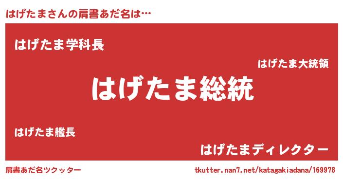 | ヒーロー風カッコイイあだ名 | 『超時空戦士ハゲタマ』『黄金騎士ハゲ』 |