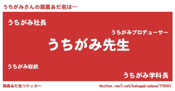 | 恥ずかしいあだ名 | 『うちちん』『プリティーうちがみ』 |
