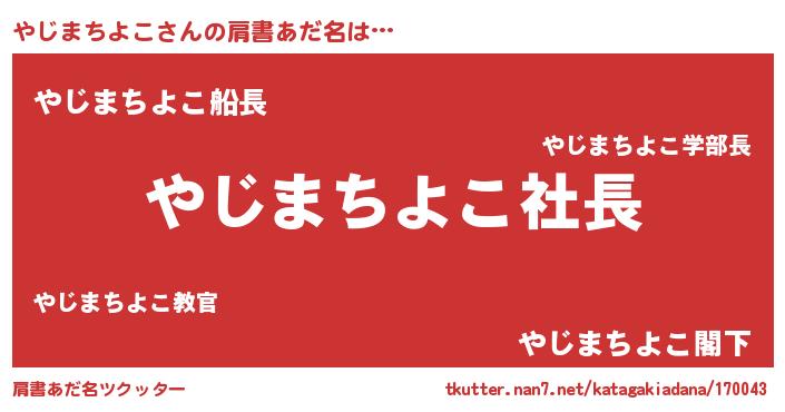 | 欧米人風あだ名 | 『マイケルやじまちよこ』 |