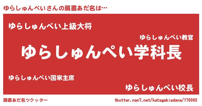 | 男性向けラノベタイトル風あだ名 | 『ノーゲーム・ノーユラシュンペイ』 |