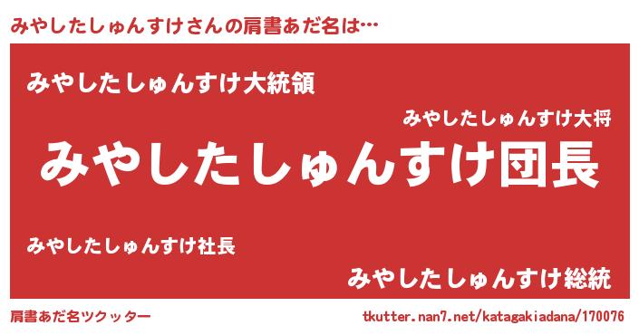 | ポケモン風あだ名 | 『ヒミヤシタシュンスケ』『ミヤシダネ』 |