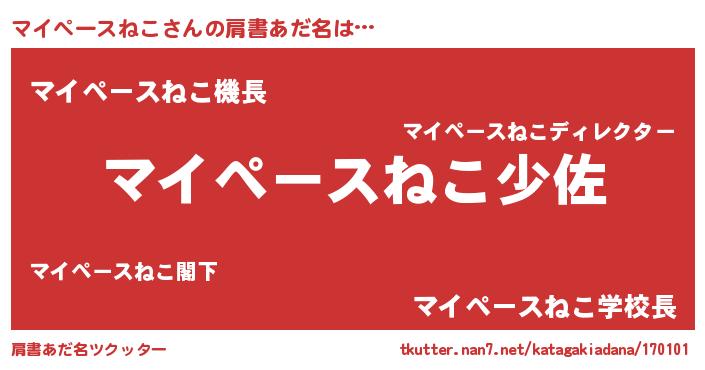 | ヒーロー風カッコイイあだ名 | 『慈愛の使者マイペースねこ』 |