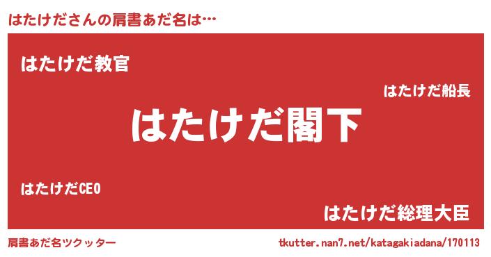 | ヒーロー風カッコイイあだ名 | 『超時空戦士ハタケダ』『仮面ハタダー』 |