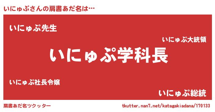 | ヒーロー風カッコイイあだ名 | 『正義の使者いにゅぷ』『ネオイニュプ』 |