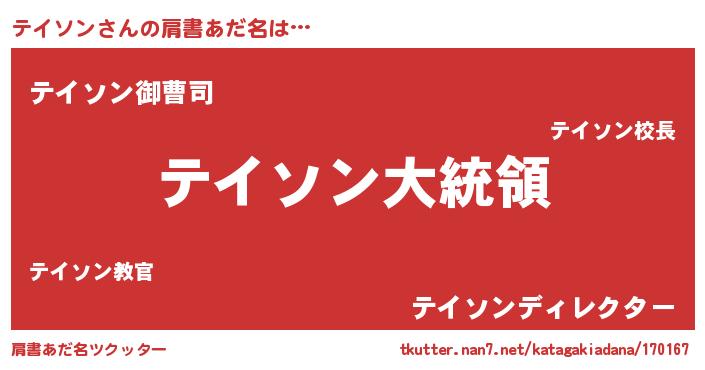 | ヒーロー風カッコイイあだ名 | 『ウルトラテイソンマン』『ネオテイソン』 |