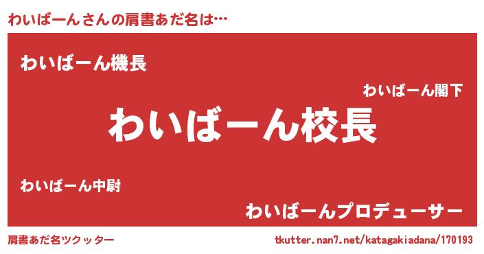| 意味不明あだ名 | 『永久保存わいばーん』『自称わいばーん』 |