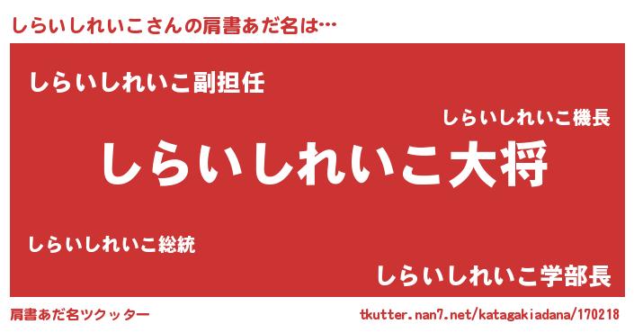 | 男性向けラノベタイトル風あだ名 | 『転生したらしらいしれいこだった件』 |