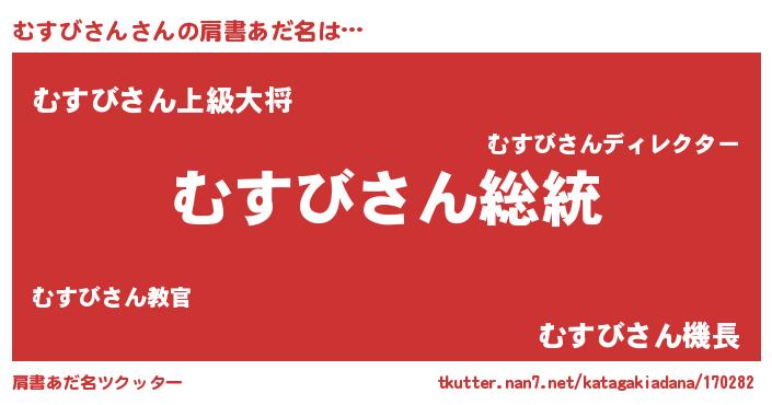 | ヒーロー風カッコイイあだ名 | 『超時空戦士ムスビサン』『仮面ムスダー』 |