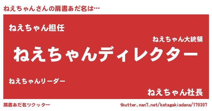 | 意味不明あだ名 | 『永久保存ねえちゃん』『自称ねえちゃん』 |