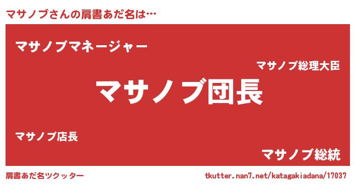 | 女子向けラノベタイトル風あだ名 | 『マサノブは平凡を望む』 |