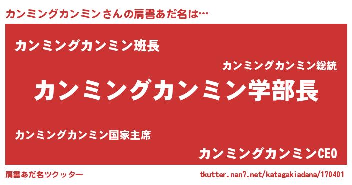 | ヒーロー風カッコイイあだ名 | 『友情の使者カンミングカンミン』 |