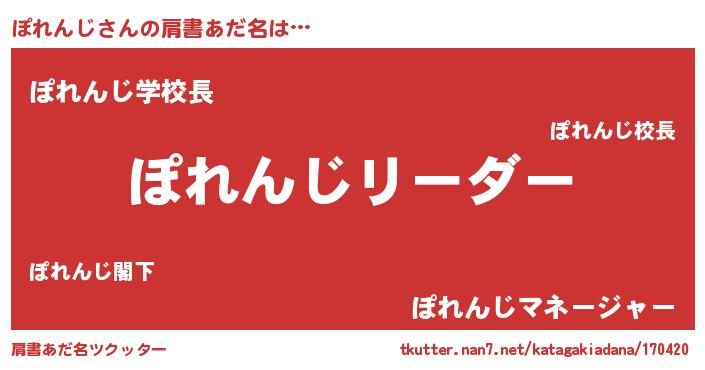 | 意味不明あだ名 | 『とにかく怪しいぽれんじ』 |