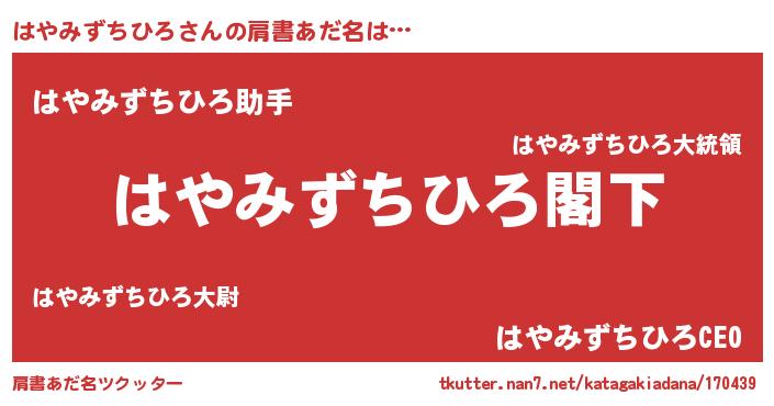 | 欧米人風あだ名 | 『ケンブリッジはやみずちひろ』 |