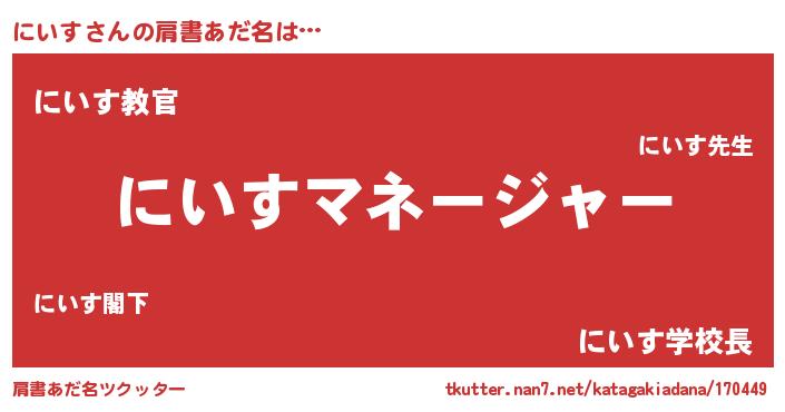 | 欧米人風あだ名 | 『アンジェラ・にいす』『ダニエルにいす』 |