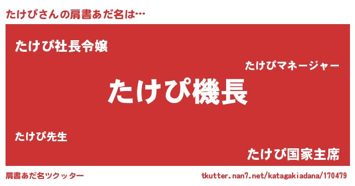 | ヒーロー風カッコイイあだ名 | 『スーパータケピ』『ウルトラたけぴマン』 |