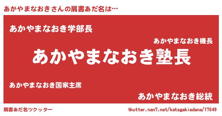 | ポケモン風あだ名 | 『ヒアカヤマナオキ』『アックウザ』 |
