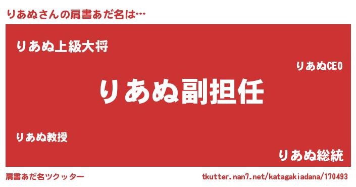 | ヘコむあだ名 | 『りあぬ(遠い目)』『りあっふぃ~』 |
