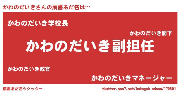 | ヒーロー風カッコイイあだ名 | 『ネオカワノダイキ』『仮面カワダー』 |