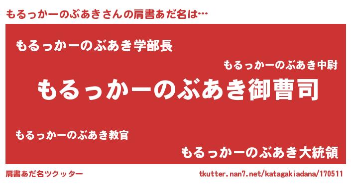 | 胡散臭い通販商品みたいなあだ名 | 『必ず成功する霊験あらたかなお札…その名も「もるっかーのぶあき」』 |