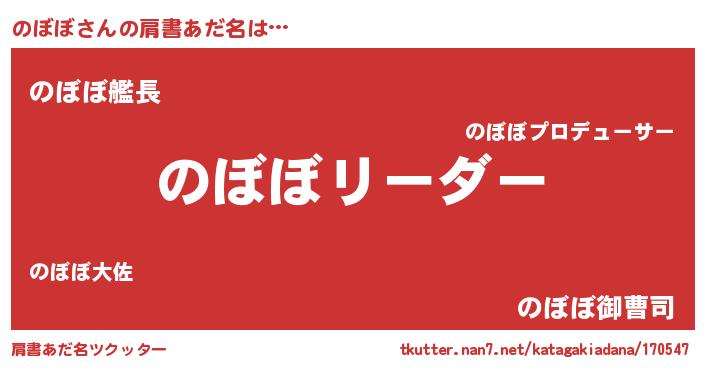 | ヘコむあだ名 | 『のぼっちょ』『のぼにゅー』 |