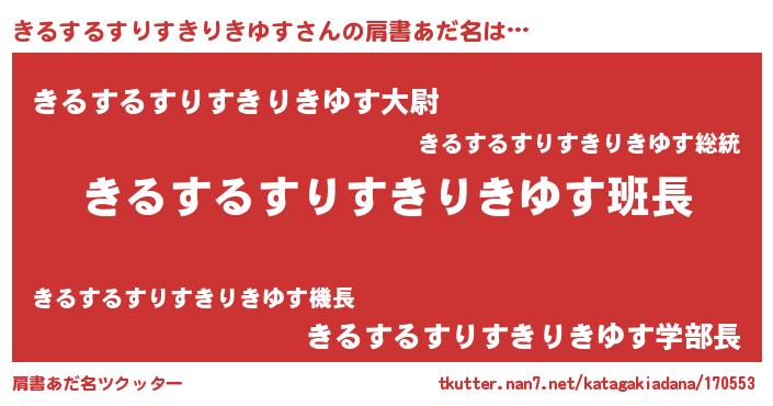 | 胡散臭い通販商品みたいなあだ名 | 『信頼と実績のサプリメント…その名も「きるするすりすきりきゆす」』 |