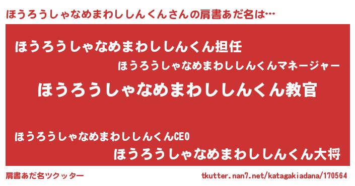 | ヘコむあだ名 | 『ほうろうしゃなめまわししんくん(震え声)』 |