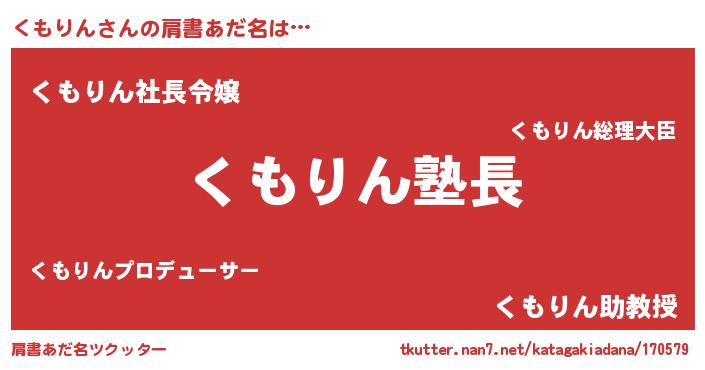 | 男性向けラノベタイトル風あだ名 | 『ダンジョンにくもりんを求めるのは間違っているだろうか』 |
