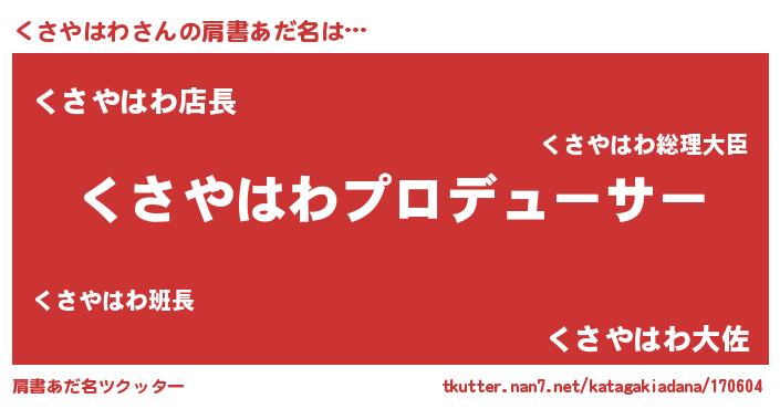 | ヒーロー風カッコイイあだ名 | 『スーパークサヤハワ』『暗黒騎士クサ』 |