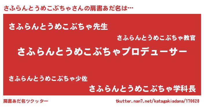 | 胡散臭い通販商品みたいなあだ名 | 『来世でも幸せになれる水素水…その名も「さふらんとうめこぶちゃ」』 |