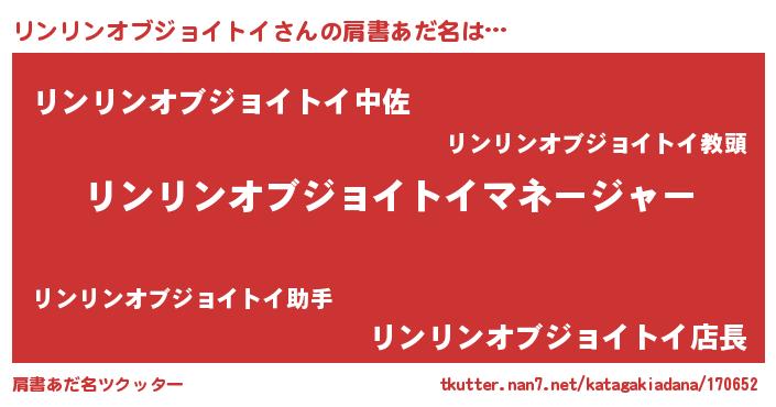 | 胡散臭い通販商品みたいなあだ名 | 『億万長者になれるブレスレット…その名も「リンリンオブジョイトイ」』 |