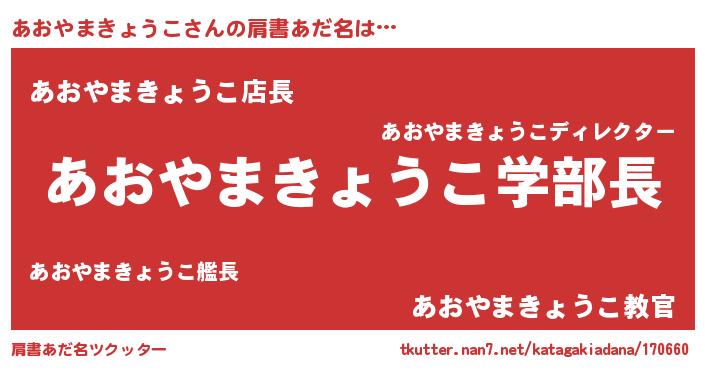 | 男性向けラノベタイトル風あだ名 | 『ノーゲーム・ノーアオヤマキョウコ』 |