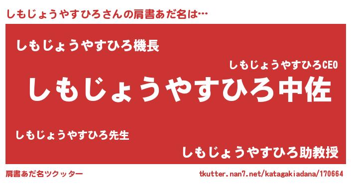 | ヘコむあだ名 | 『しもにー』『しもじょうやすひろ(苦笑)』 |