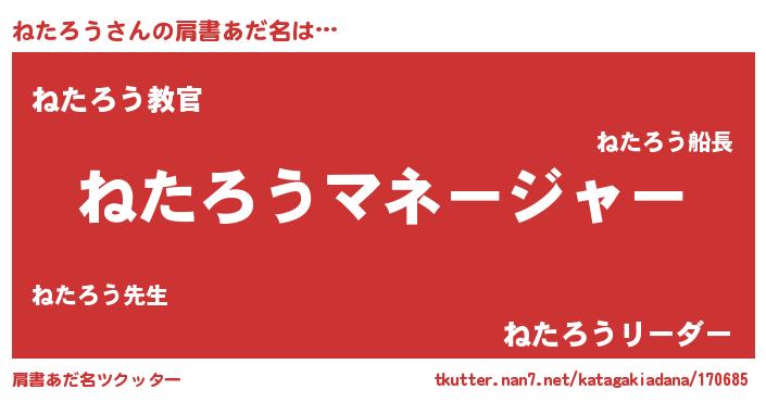 | 男性向けラノベタイトル風あだ名 | 『はたらくねたろうさま!』 |