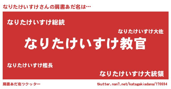 | 意味不明あだ名 | 『住所不定無職なりたけいすけ(2歳)』 |