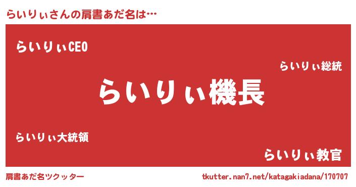 | 意味不明あだ名 | 『ペロリンらいりぃ』『自称らいりぃ』 |