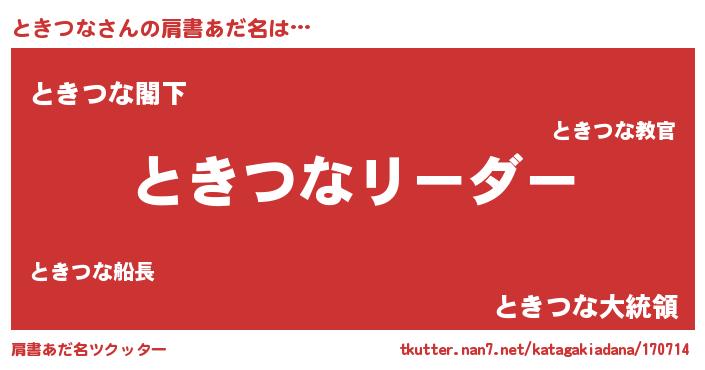 | 意味不明あだ名 | 『とにかく怪しいときつな』 |