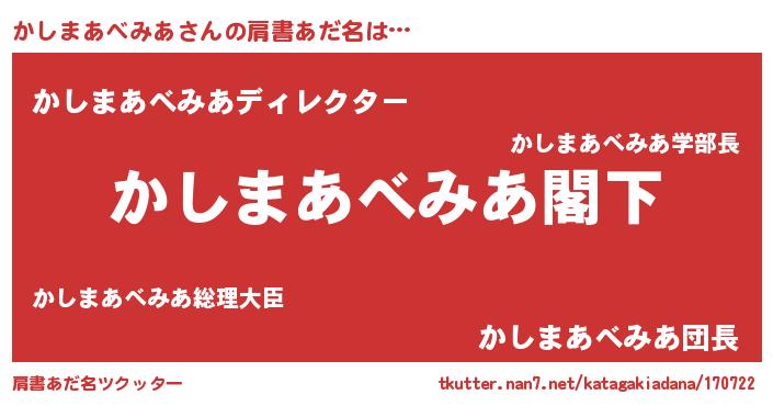 | 意味不明あだ名 | 『自称かしまあべみあ』 |