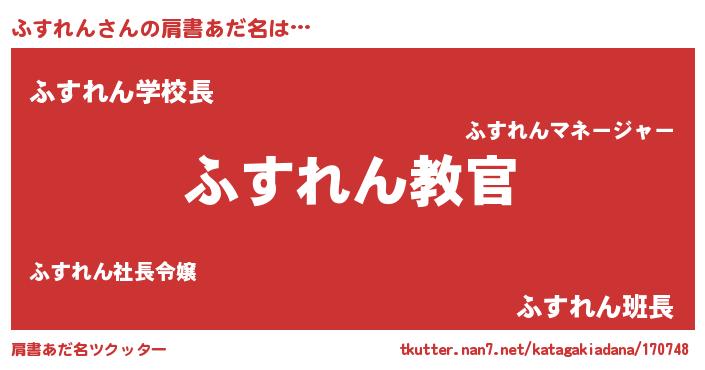 | 男性向けラノベタイトル風あだ名 | 『魔弾の王とふすれん』『ふすれんの憂鬱』 |