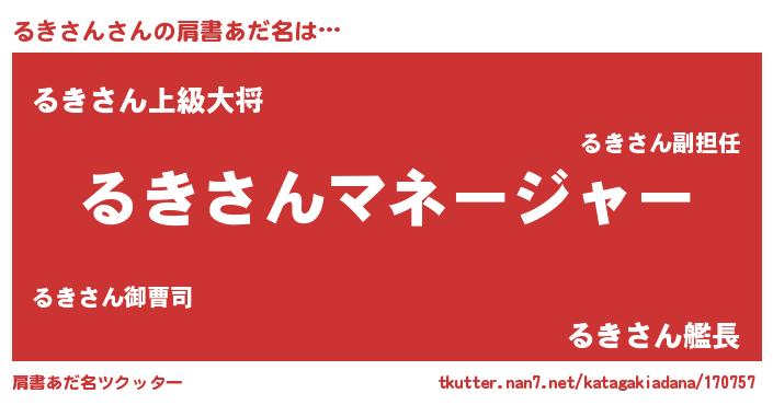| 男性向けラノベタイトル風あだ名 | 『るきさんに滅ぼされるだけの簡単なお仕事です』 |