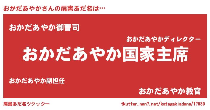 | 欧米人風あだ名 | 『おかだあやかクリステル』 |