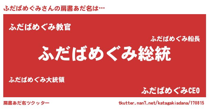 | 女子向けラノベタイトル風あだ名 | 『ふだばめぐみなんてお断りですっ。』 |