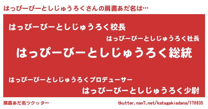 | ヘコむあだ名 | 『はっぴーびーとしじゅうろく(震え声)』 |