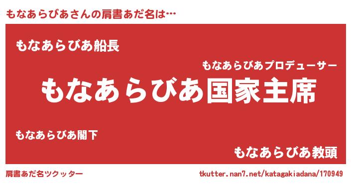 | 欧米人風あだ名 | 『もなあらびあクリステル』 |