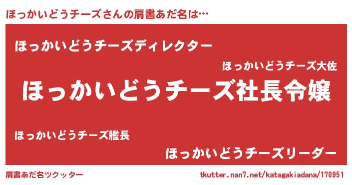 | ヒーロー風カッコイイあだ名 | 『スーパーホッカイドウチーズ』 |