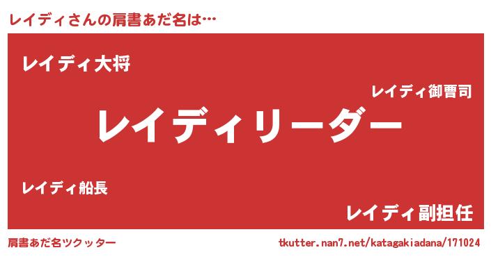 | ヘコむあだ名 | 『レイっちょ』『レイディ(震え声)』 |