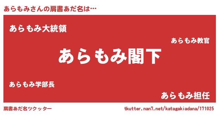| 女子向けラノベタイトル風あだ名 | 『あらもみストレイドッグス』 |
