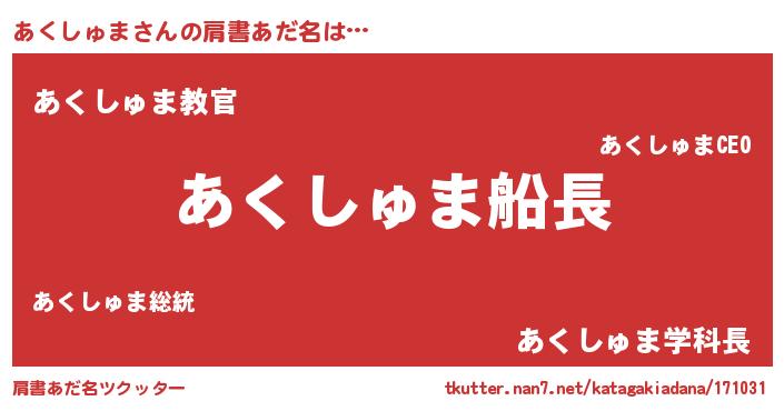 | ヒーロー風カッコイイあだ名 | 『仮面アクダー』『天空の使者あくしゅま』 |