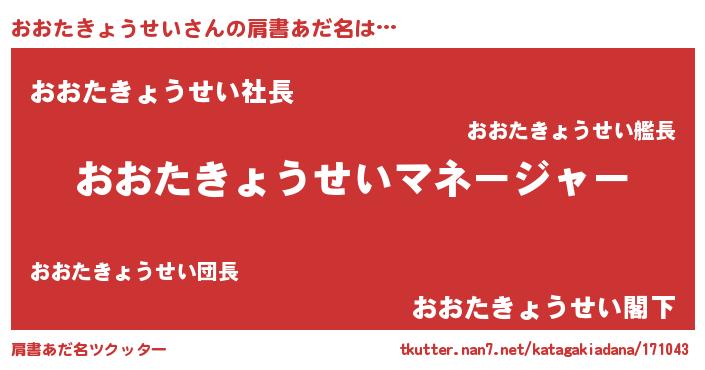 | 男性向けラノベタイトル風あだ名 | 『はたらくおおたきょうせいさま!』 |