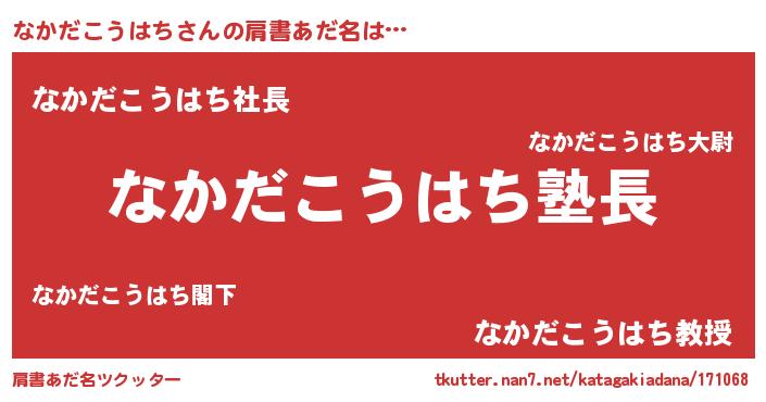 | 意味不明あだ名 | 『とにかく怪しいなかだこうはち』 |