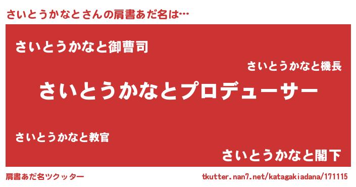 | 男性向けラノベタイトル風あだ名 | 『さいとうかなとに滅ぼされるだけの簡単なお仕事です』 |